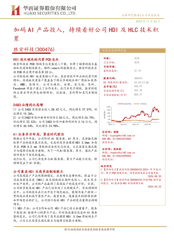 【华西证券】【20241126】胜宏科技(300476)加码AI产品投入,持续看好公司HDI及HLC技术积累-16页