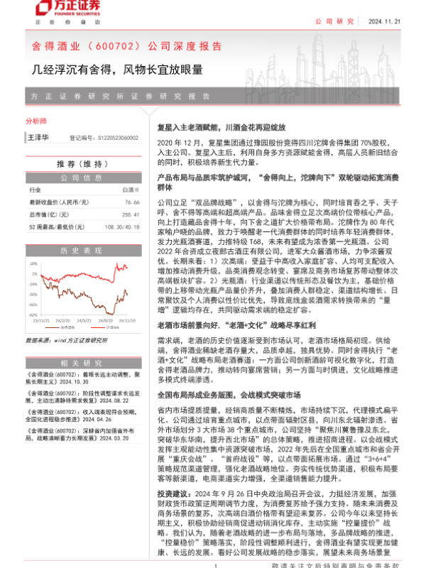 【方正证券】【20241121】舍得酒业(600702)公司深度报告:几经浮沉有舍得,风物长宜放眼量-42页
