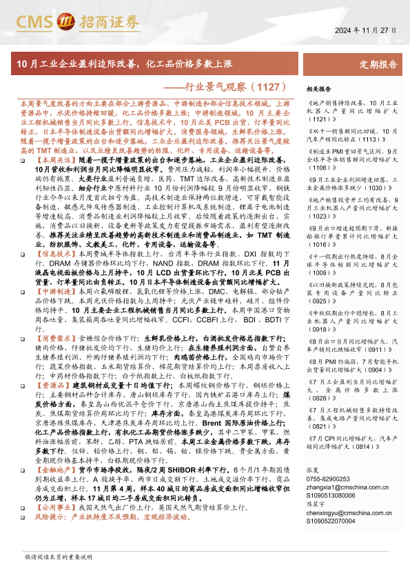 【海通证券】【20241127】行业景气观察:10月工业企业盈利边际改善,化工品价格多数上涨-31页