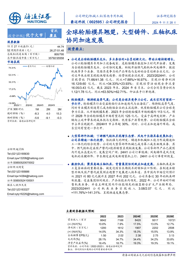 【海通证券】【20241128】豪迈科技(002595)公司研究报告:全球轮胎模具翘楚,大型铸件、五轴机床协同加速发展-31页