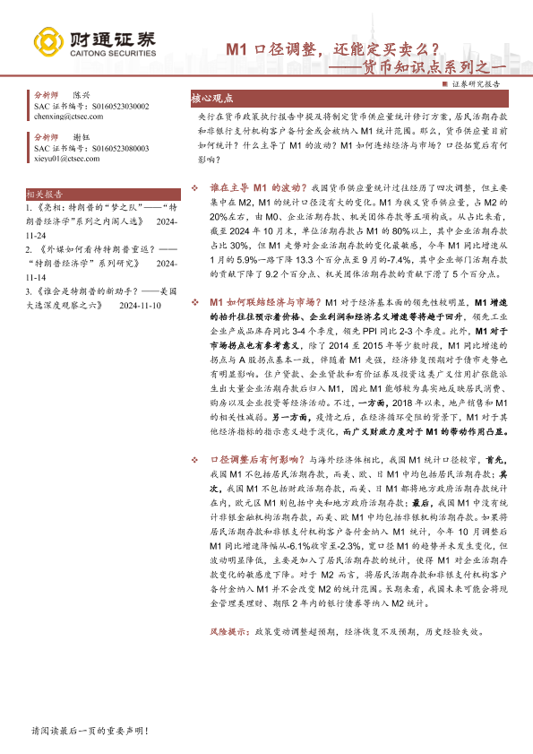 【财通证券】【20241128】货币知识点系列之一:M1口径调整,还能定买卖么?-11页