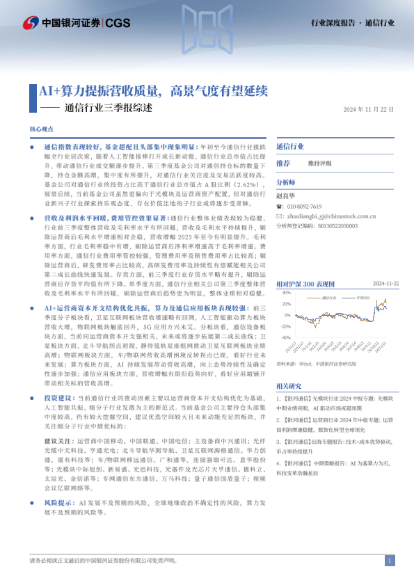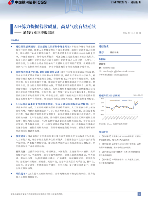 AI+算力 基金持仓 投资建议 营收质量 通信行业