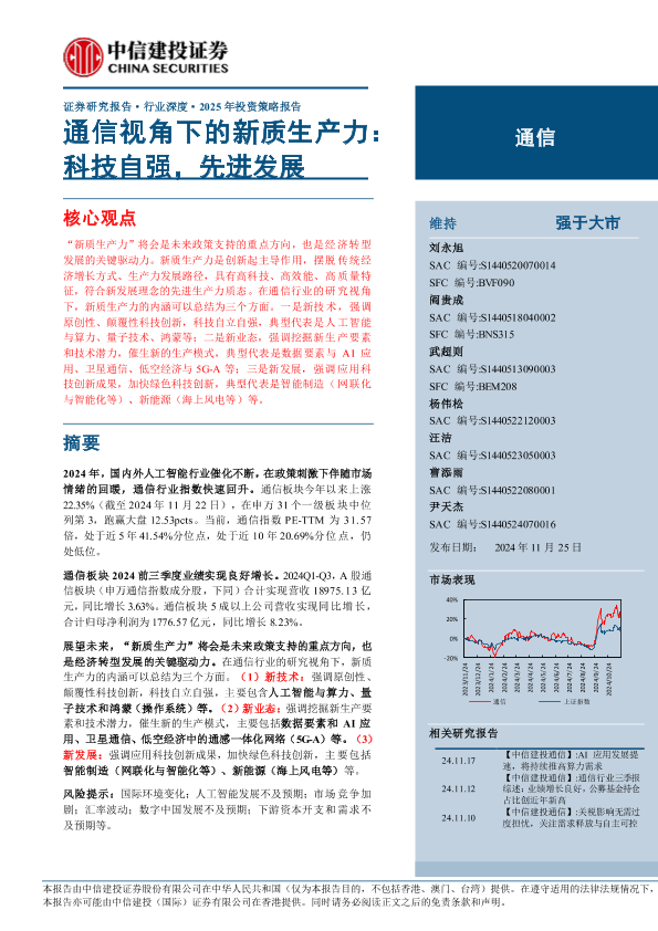 【中信建投证券】【20241125】通信行业深度·2025年投资策略报告:通信视角下的新质生产力,科技自强,先进发展-64页