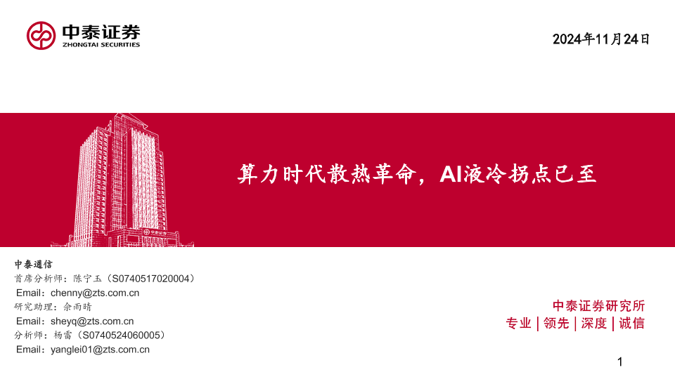 【中泰证券】【20241124】通信行业:算力时代散热革命,AI液冷拐点已至-58页