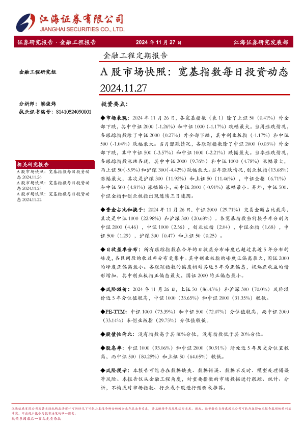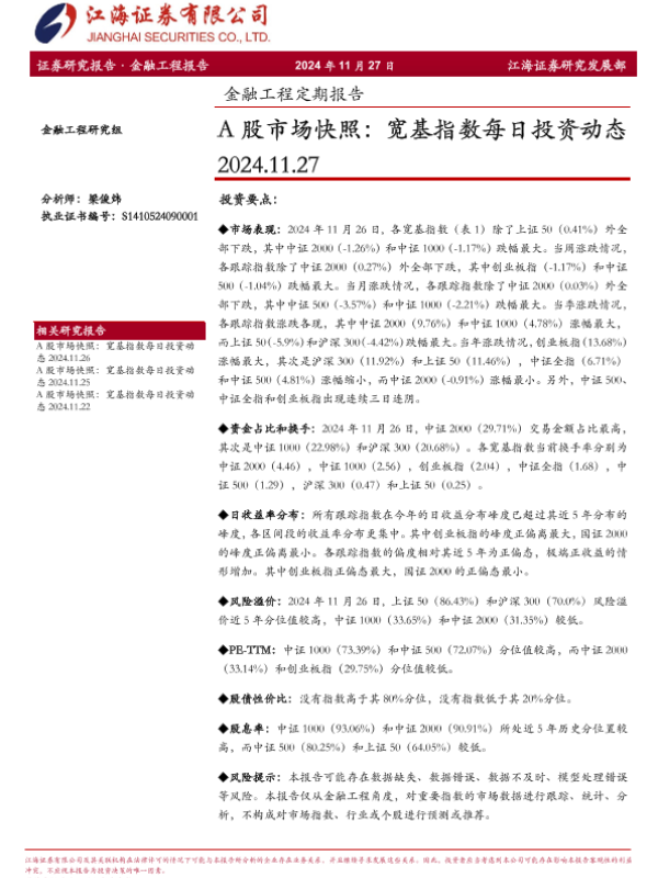 【江海证券】【20241127】金融工程定期报告:A股市场快照,宽基指数每日投资动态-13页