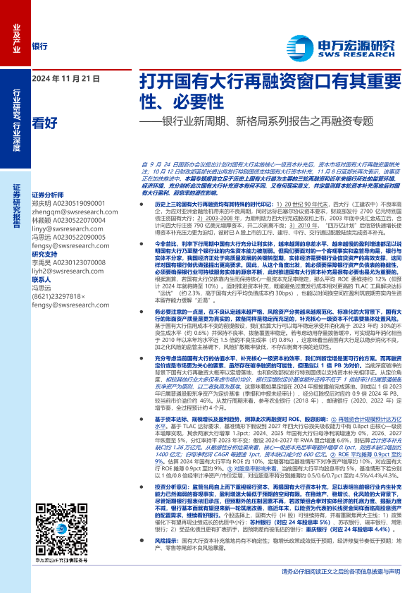 【申万宏源】【20241121】银行业新周期、新格局系列报告之再融资专题:打开国有大行再融资窗口有其重要性、必要性-19页