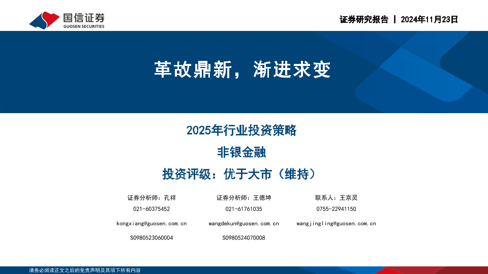 【国信证券】【20241123】非银金融行业2025年行业投资策略:革故鼎新,渐进求变-94页