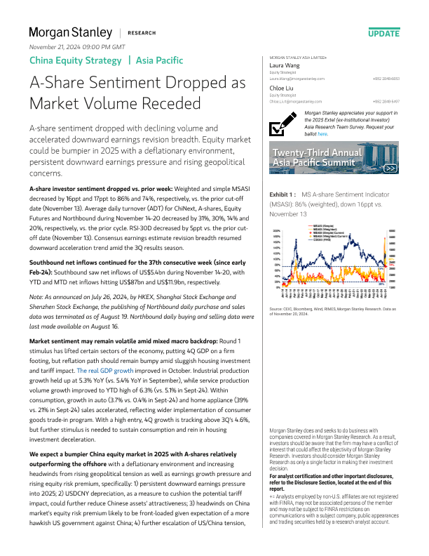 【Morgan Stanley】【202411】China Equity Strategy A-Share Sentiment Dropped as Market Volume Receded-12页