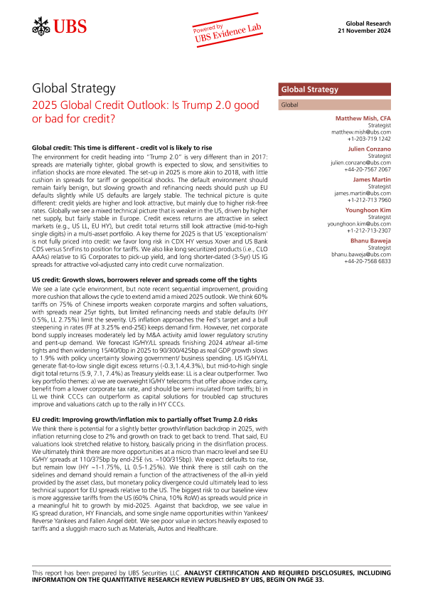 【UBS Securities LLC】【20241121】2025 Global Credit Outlook Is Trump 2.0 good or bad for credit?-38页