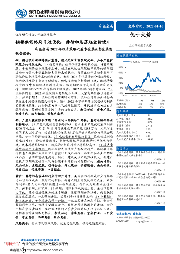 【东北证券】【20220116】有色金属行业2022年投资策略之基本金属&贵金属篇:铜铝供需格局日趋优化,静待加息落地金价慢牛-37页