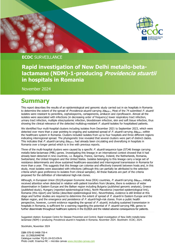 【European Centre for Disease Prevention and Control】【202411】欧洲疾控中心-罗马尼亚医院对产新德里金属β-内酰胺酶(NDM)-1的Providencia stuartii的快速调查-16页