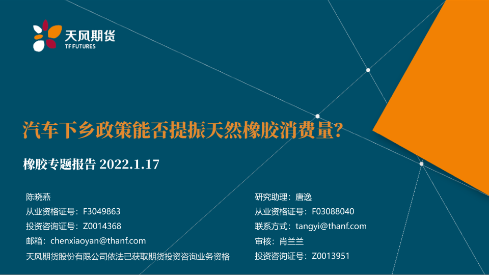 【天风期货】【20220117】橡胶专题报告:汽车下乡政策能否提振天然橡胶消费量?-16页
