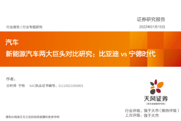 【天风证券】【20220115】汽车行业专题研究:新能源汽车两大巨头对比研究,比亚迪vs宁德时代-37页