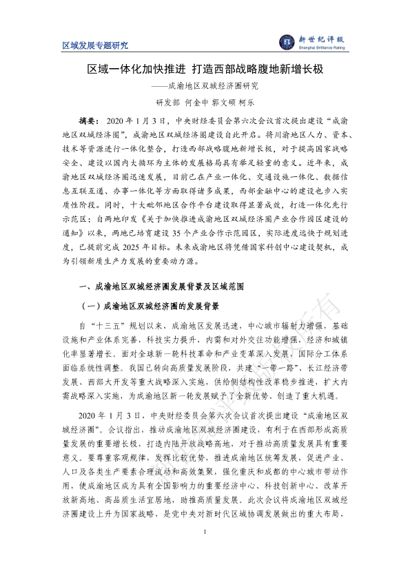 【研发部】【2024】区域一体化加快推进 打造西部战略腹地新增长极——成渝地区双城经济圈研究-27页