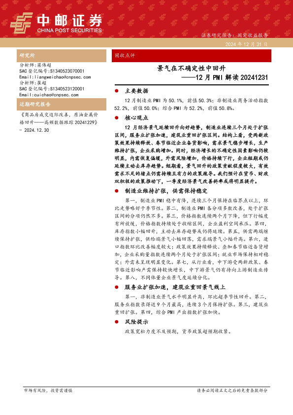 【中邮证券】【20241231】12月PMI解读:景气在不确定性中回升-10页
