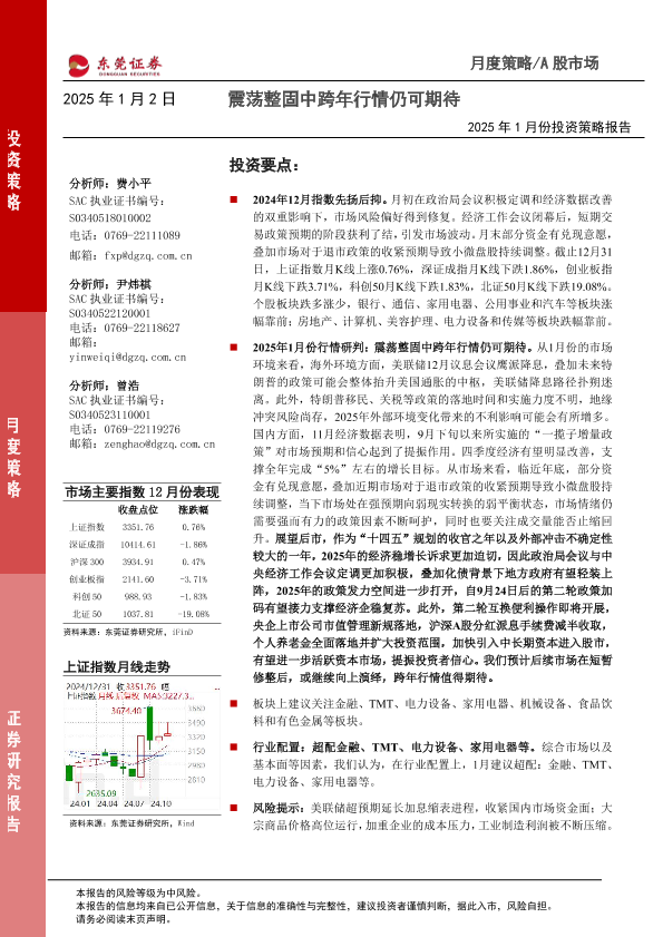 【东莞证券】【20250102】2025年1月份投资策略报告:震荡整固中跨年行情仍可期待-15页