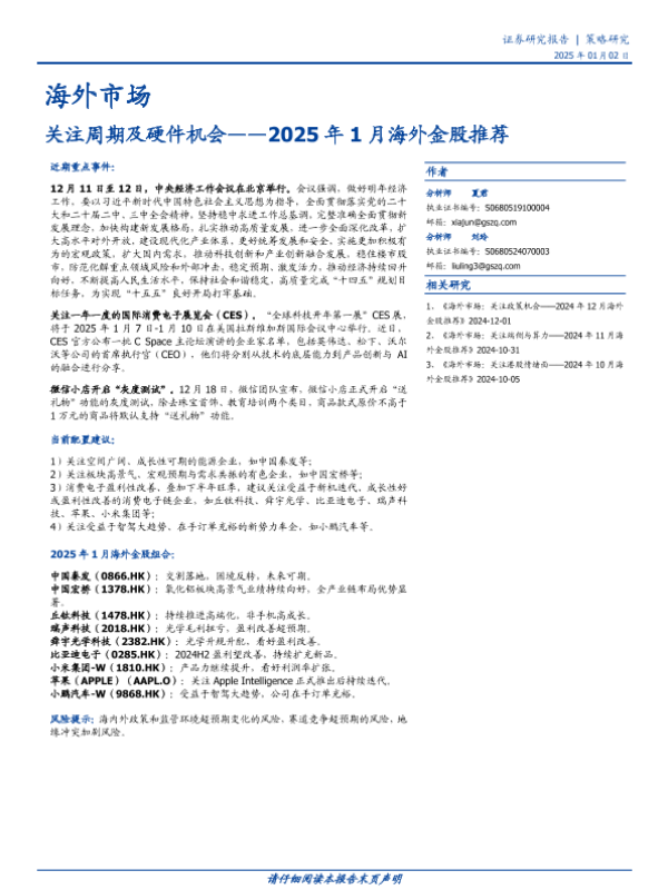 【国盛证券】【20250102】2025年1月海外金股推荐:关注周期及硬件机会-17页