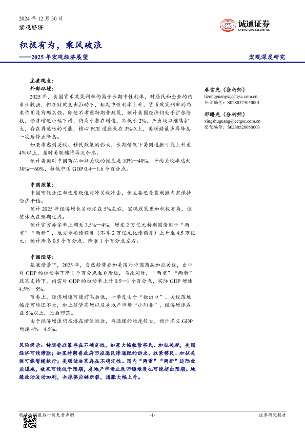 【诚通证券】【20241230】2025年宏观经济展望:积极有为,乘风破浪-33页