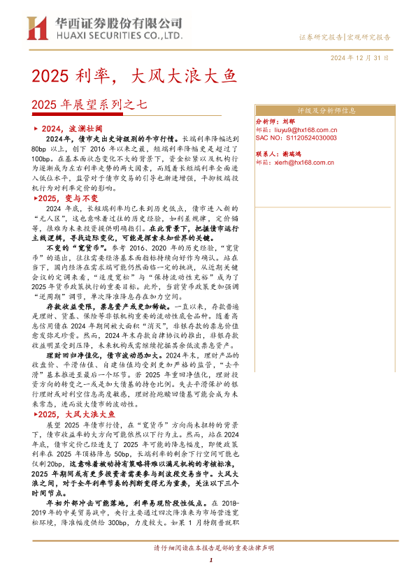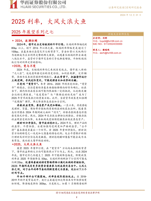 【华西证券】【20241231】2025年展望系列之七:2025利率,大风大浪大鱼-25页