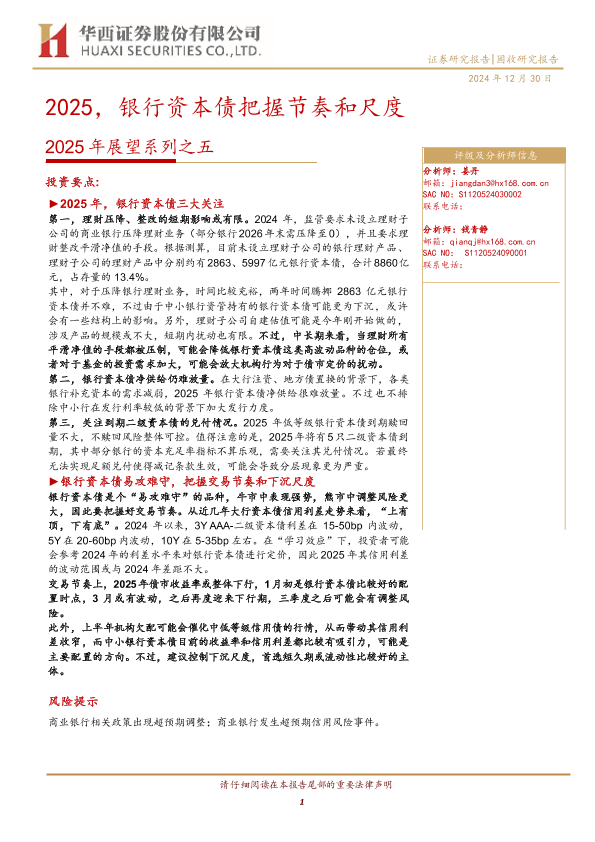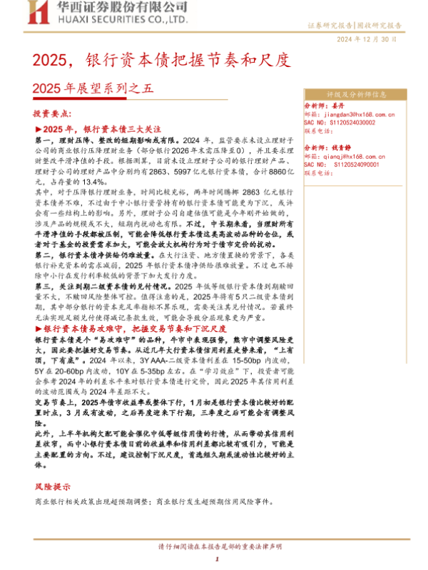 【华西证券】【20241230】2025年展望系列之五:2025,银行资本债把握节奏和尺度-24页