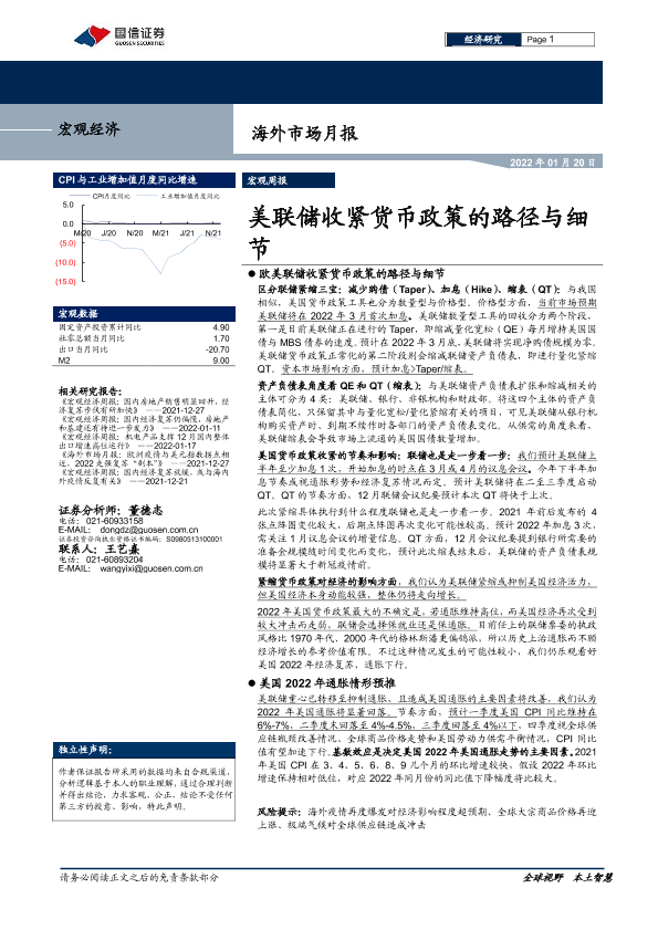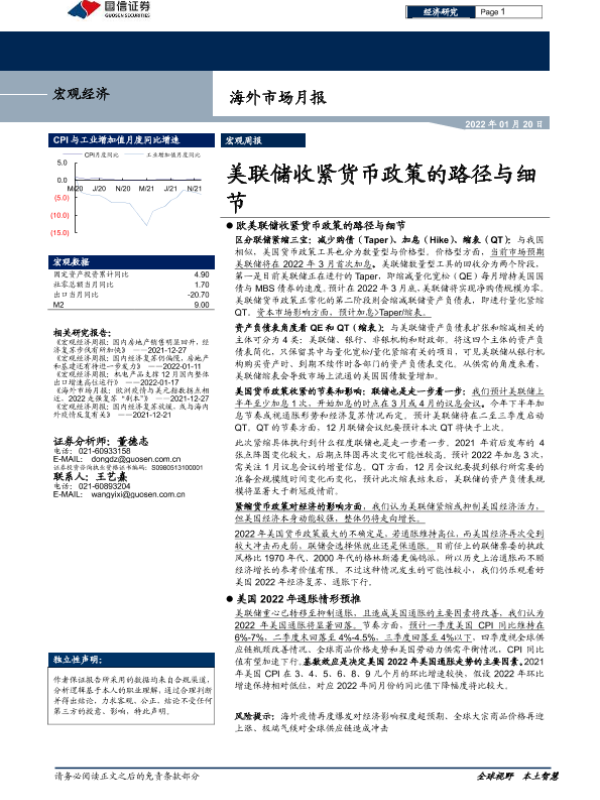 【国信证券】【20220120】海外市场月报:美联储收紧货币政策的路径与细节-16页