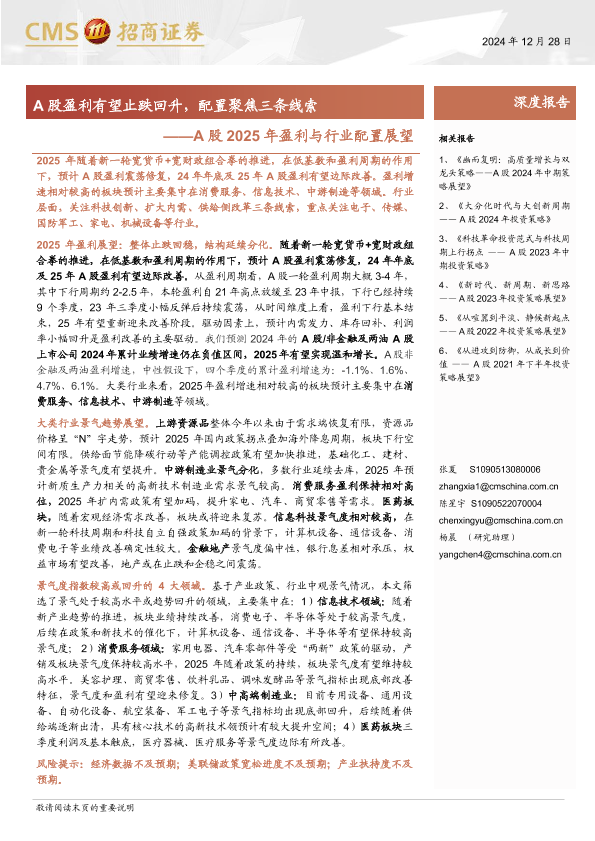 【海通证券】【20241228】A股2025年盈利与行业配置展望:A股盈利有望止跌回升,配置聚焦三条线索-40页