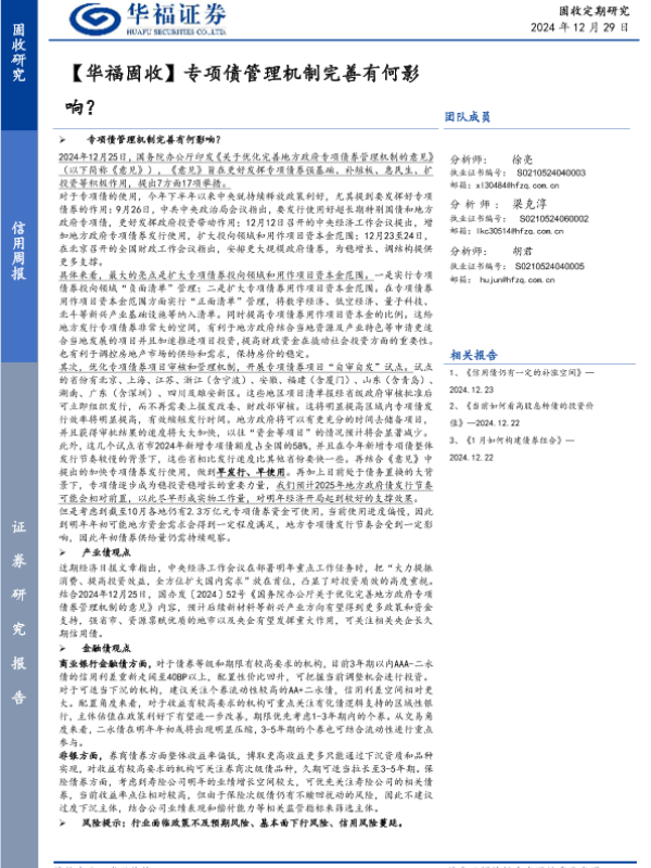 【华福证券】【20241229】【华福固收】专项债管理机制完善有何影响?-20页