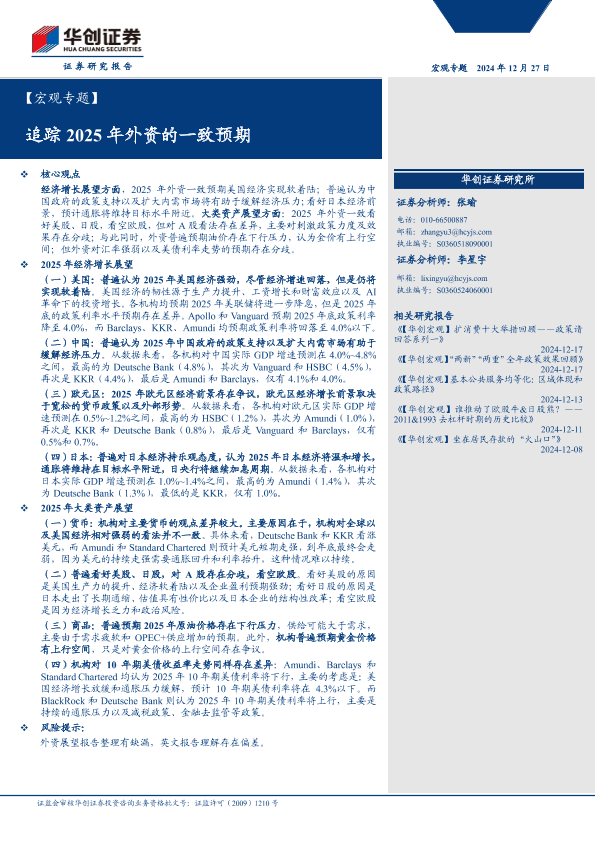 【华创证券】【20241227】【宏观专题】追踪2025年外资的一致预期-20页