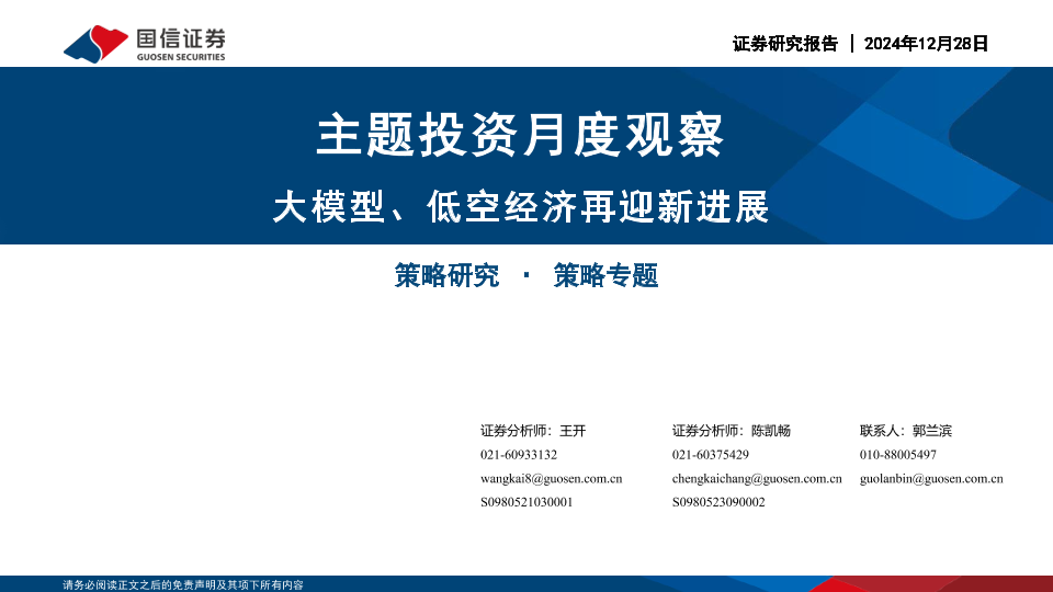 【国信证券】【20241228】主题投资月度观察:大模型、低空经济再迎新进展-27页