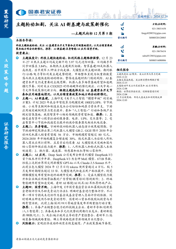 【国泰君安证券】【20241229】主题风向标12月第5期:主题轮动加剧,关注AI新基建与政策新催化-16页
