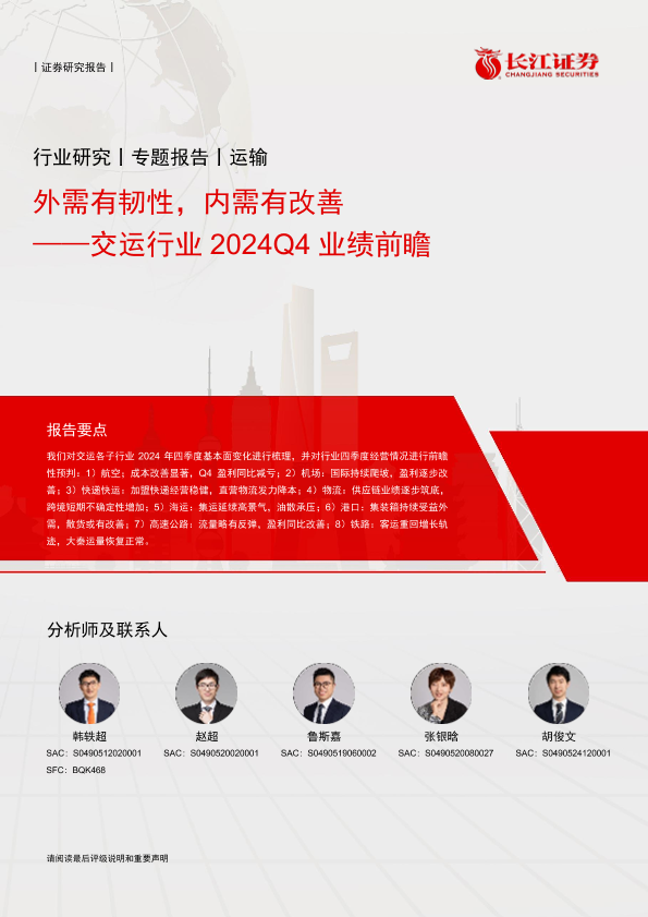 【长江证券】【20241229】交运行业2024Q4业绩前瞻:外需有韧性,内需有改善-14页