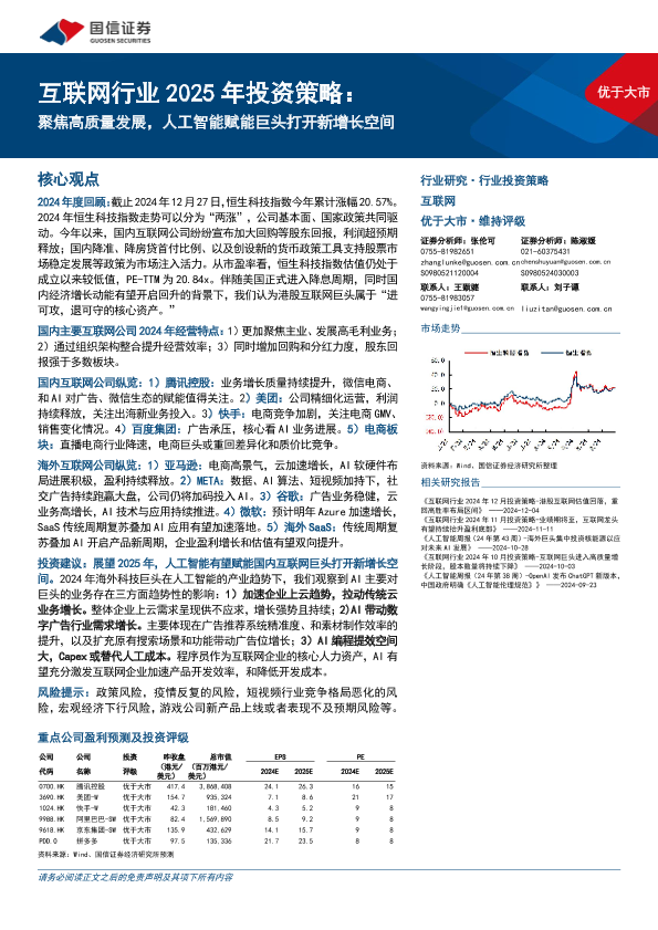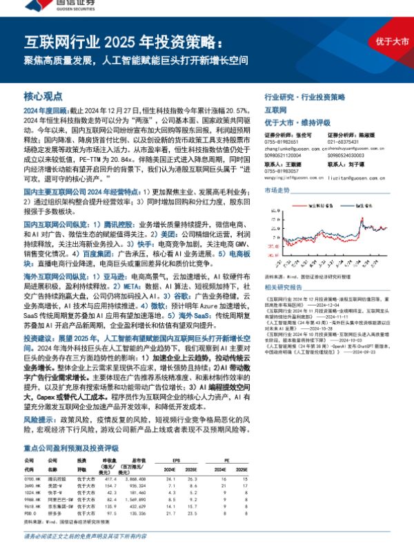 【国信证券】【20241231】互联网行业2025年投资策略:聚焦高质量发展,人工智能赋能巨头打开新增长空间-58页