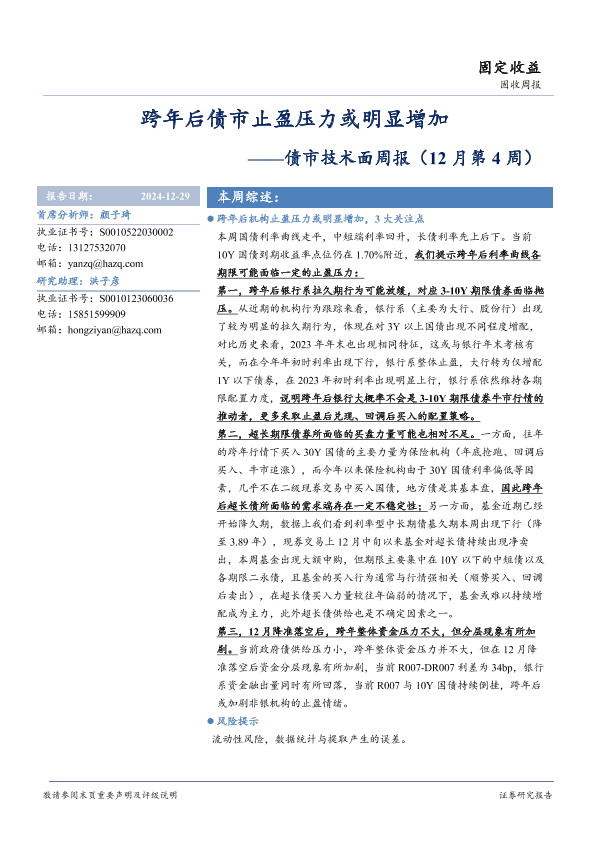 【华安证券】【20241229】债市技术面:跨年后债市止盈压力或明显增加-16页