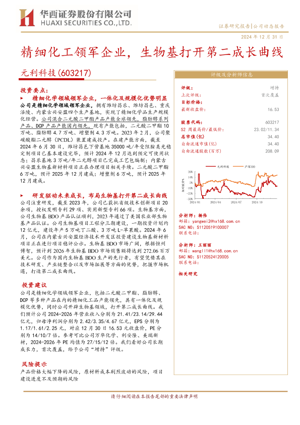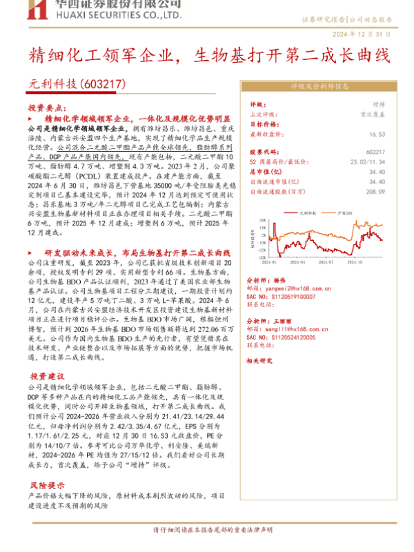 【华西证券】【20241231】元利科技(603217)精细化工领军企业,生物基打开第二成长曲线-12页