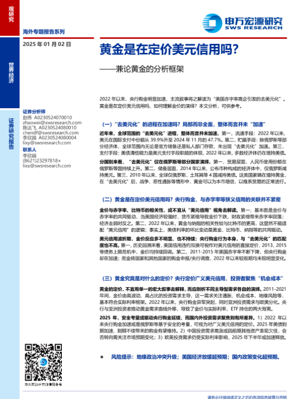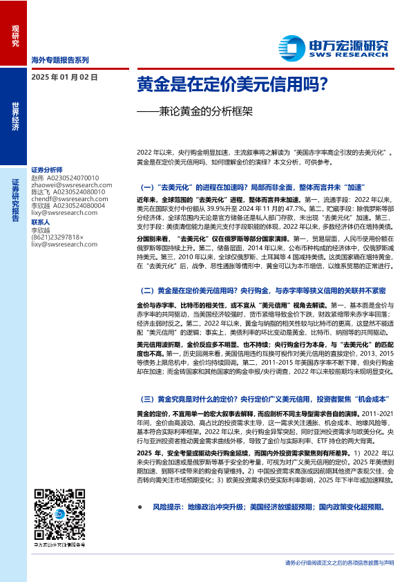 【申万宏源】【20250102】兼论黄金的分析框架:黄金是在定价美元信用吗?-18页