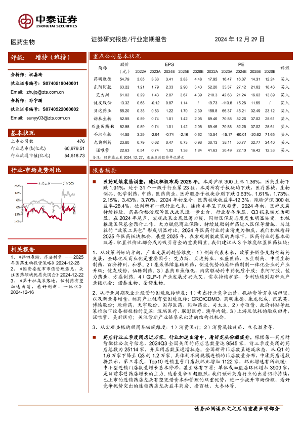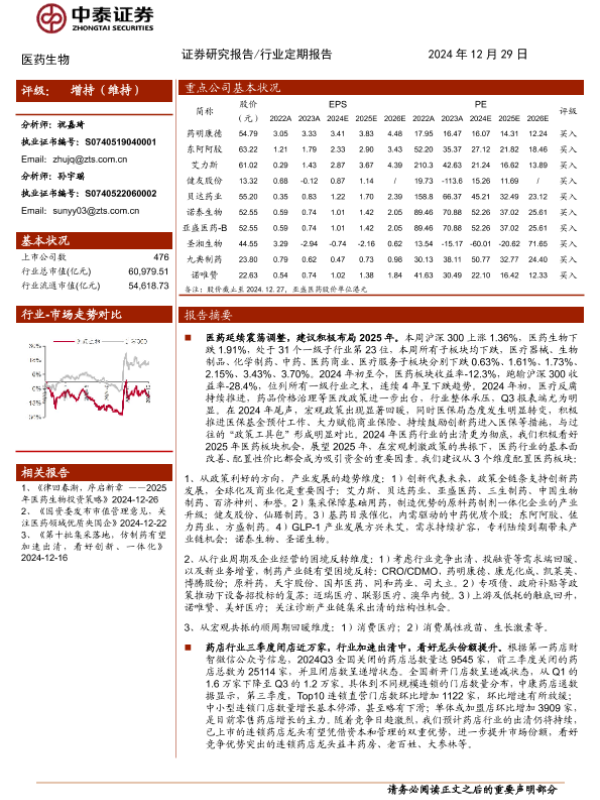 【中泰证券】【20241229】医药生物行业:医药行业出清更甚,积极布局2025年-11页