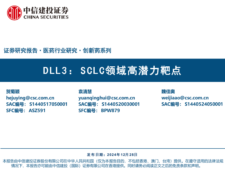 【中信建投证券】【20241228】医药行业研究·创新药系列:DLL+3,SCLC领域高潜力靶点-22页