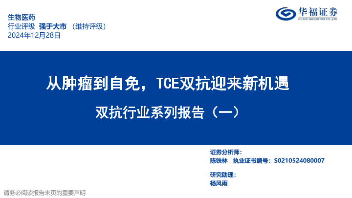 【华福证券】【20241228】双抗行业系列报告(一):从肿瘤到自免,TCE双抗迎来新机遇-41页