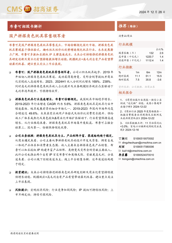 【海通证券】【20241228】商业行业布鲁可招股书解析:国产拼搭角色玩具零售领军者-12页