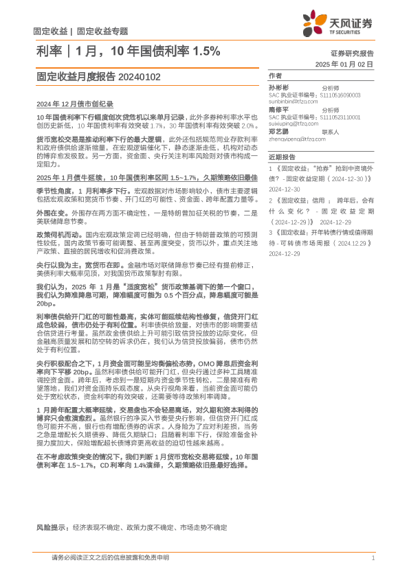 【天风证券】【20250102】固定收益月度报告:利率|1月,10年国债利率1.5%-18页
