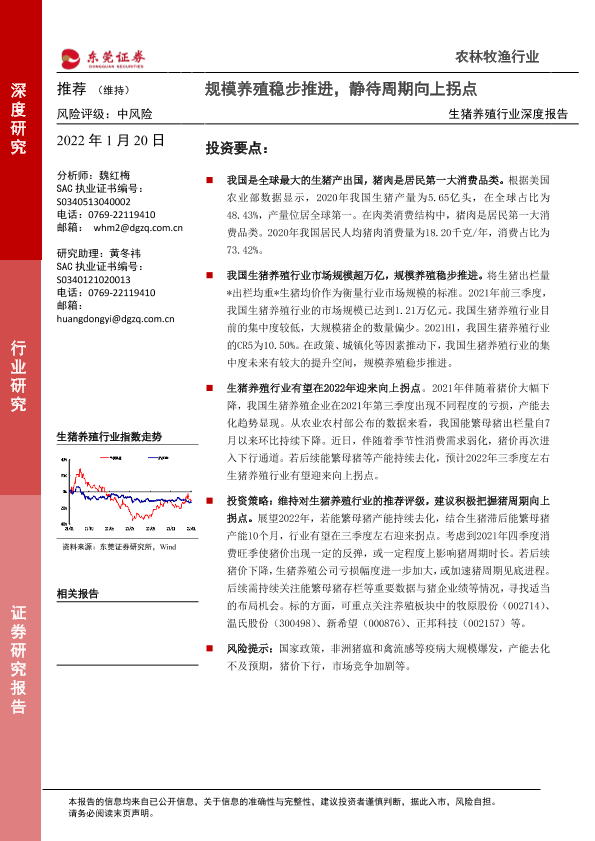 【东莞证券】【20220120】生猪养殖行业深度报告:规模养殖稳步推进,静待周期向上拐点-34页