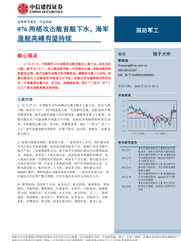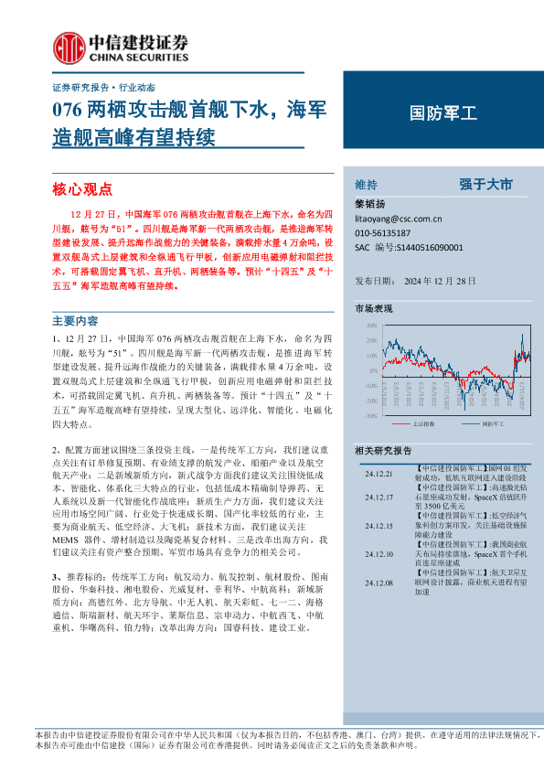 【中信建投证券】【20241228】国防军工行业:076两栖攻击舰首舰下水,海军造舰高峰有望持续-24页