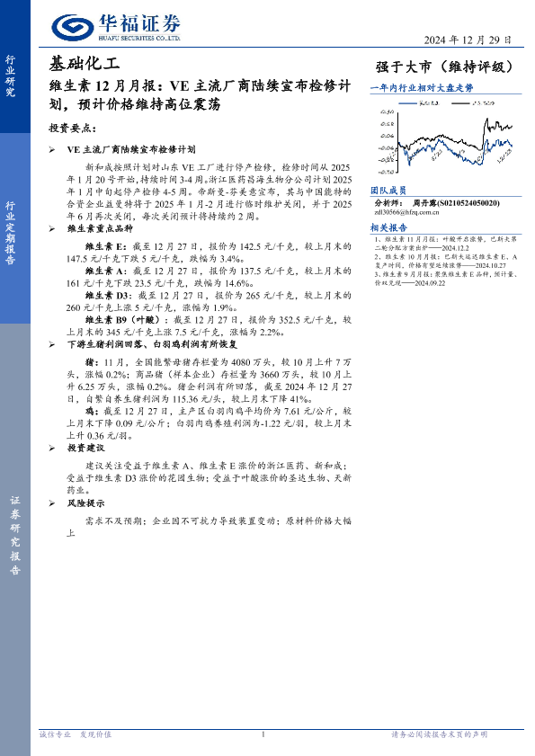 【华福证券】【20241229】基础化工行业维生素12月月报:VE主流厂商陆续宣布检修计划,预计价格维持高位震荡-11页