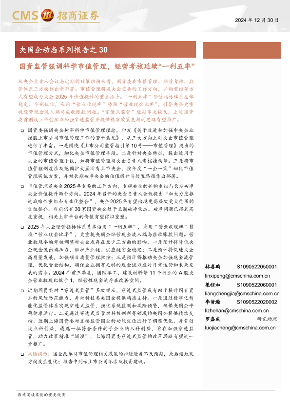 【海通证券】【20241230】央国企动态系列报告之30:国资监管强调科学市值管理,经营考核延续“一利五率”-32页