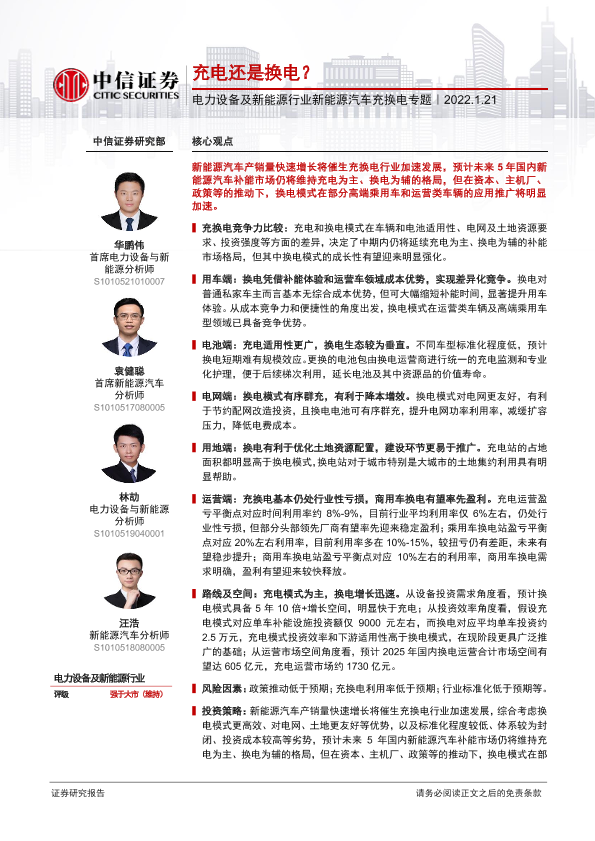 【中信证券】【20220121】电力设备及新能源行业新能源汽车充换电专题:充电还是换电?-19页