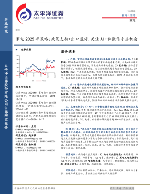 【太平洋证券】【20241229】家电行业2025年策略:政策支持+出口蓝海,关注AI+和微信小店机会-22页