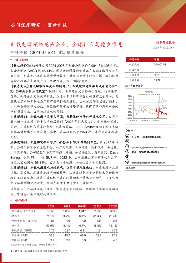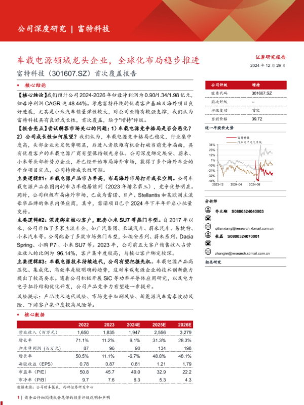 【西部证券】【20241229】富特科技(301607)首次覆盖报告:车载电源领域龙头企业,全球化布局稳步推进-25页