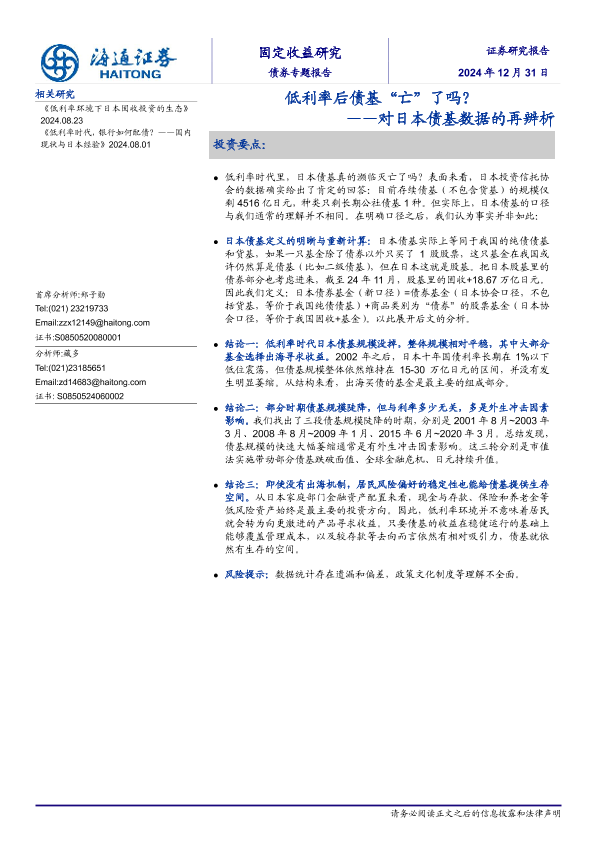 【海通证券】【20241231】对日本债基数据的再辨析:低利率后债基“亡”了吗?-11页