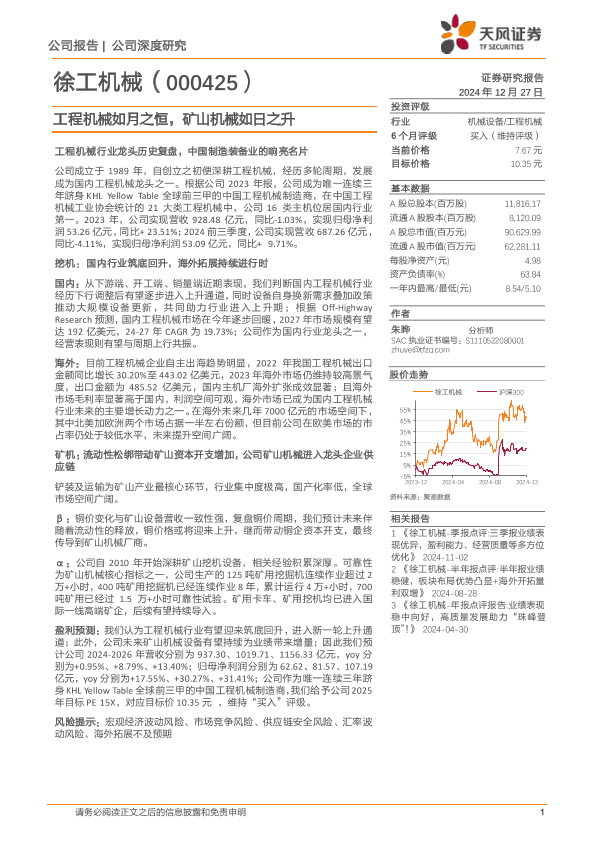 【天风证券】【20241227】徐工机械(000425)工程机械如月之恒,矿山机械如日之升-32页