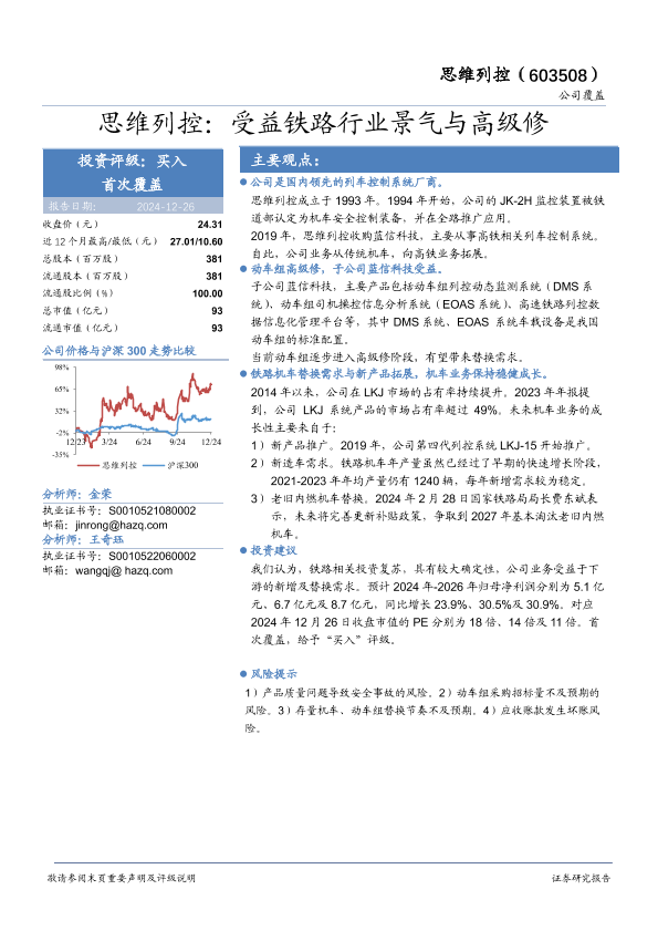 【华安证券】【20241226】思维列控(603508)受益铁路行业景气与高级修-20页